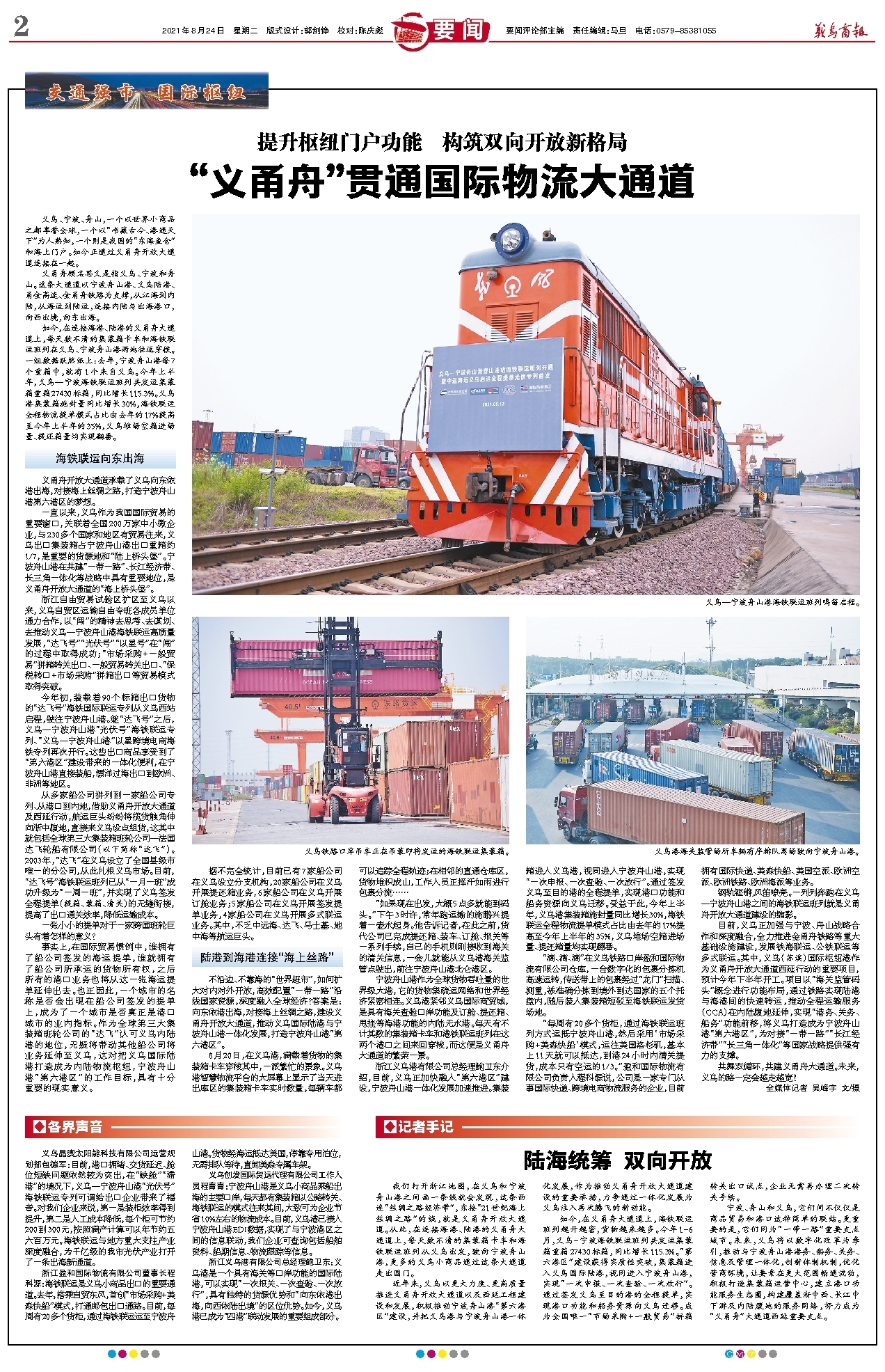 “义甬舟”贯通国际物流大通道