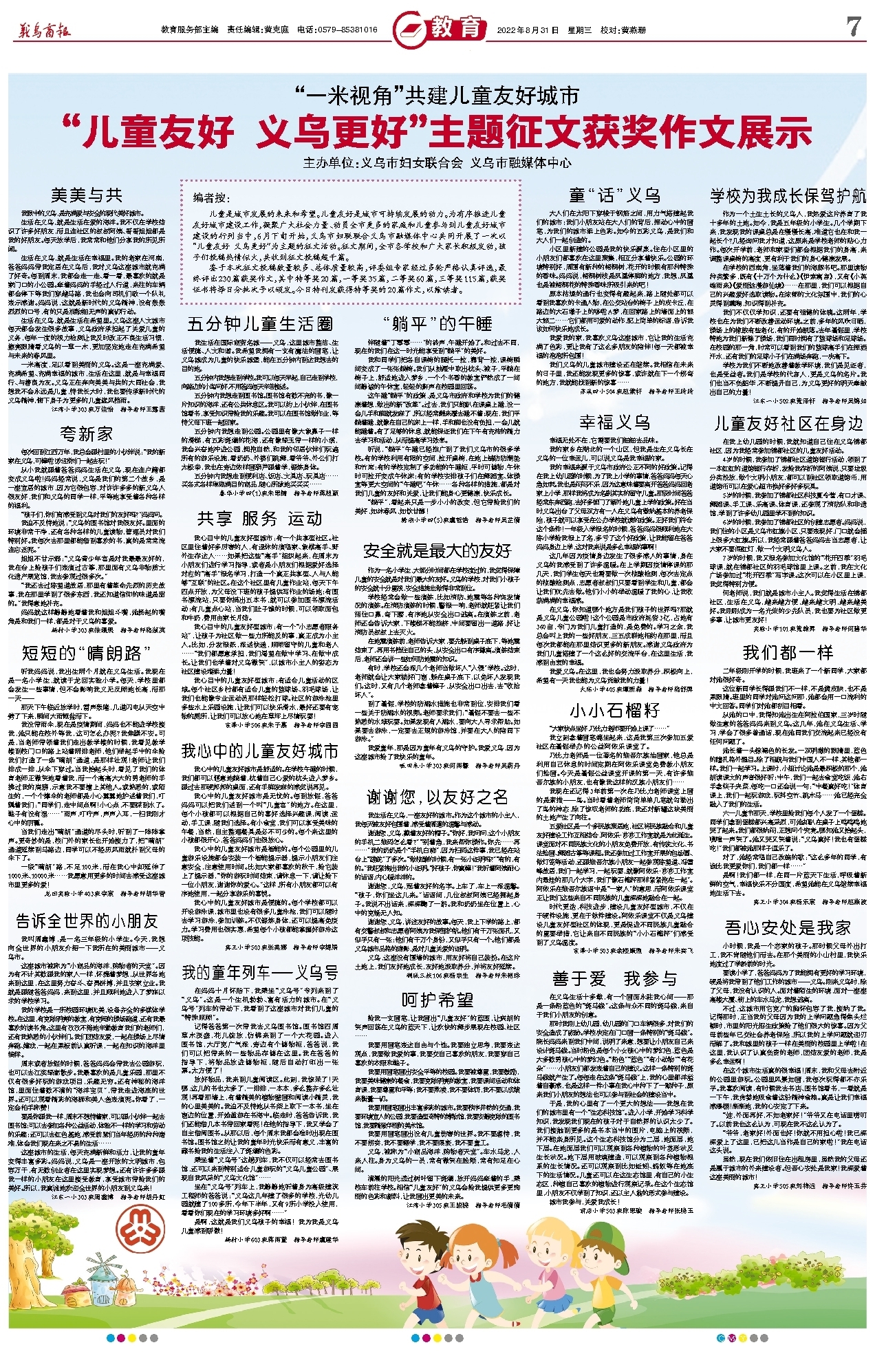 “儿童友好 义乌更好”主题征文获奖作文展示
