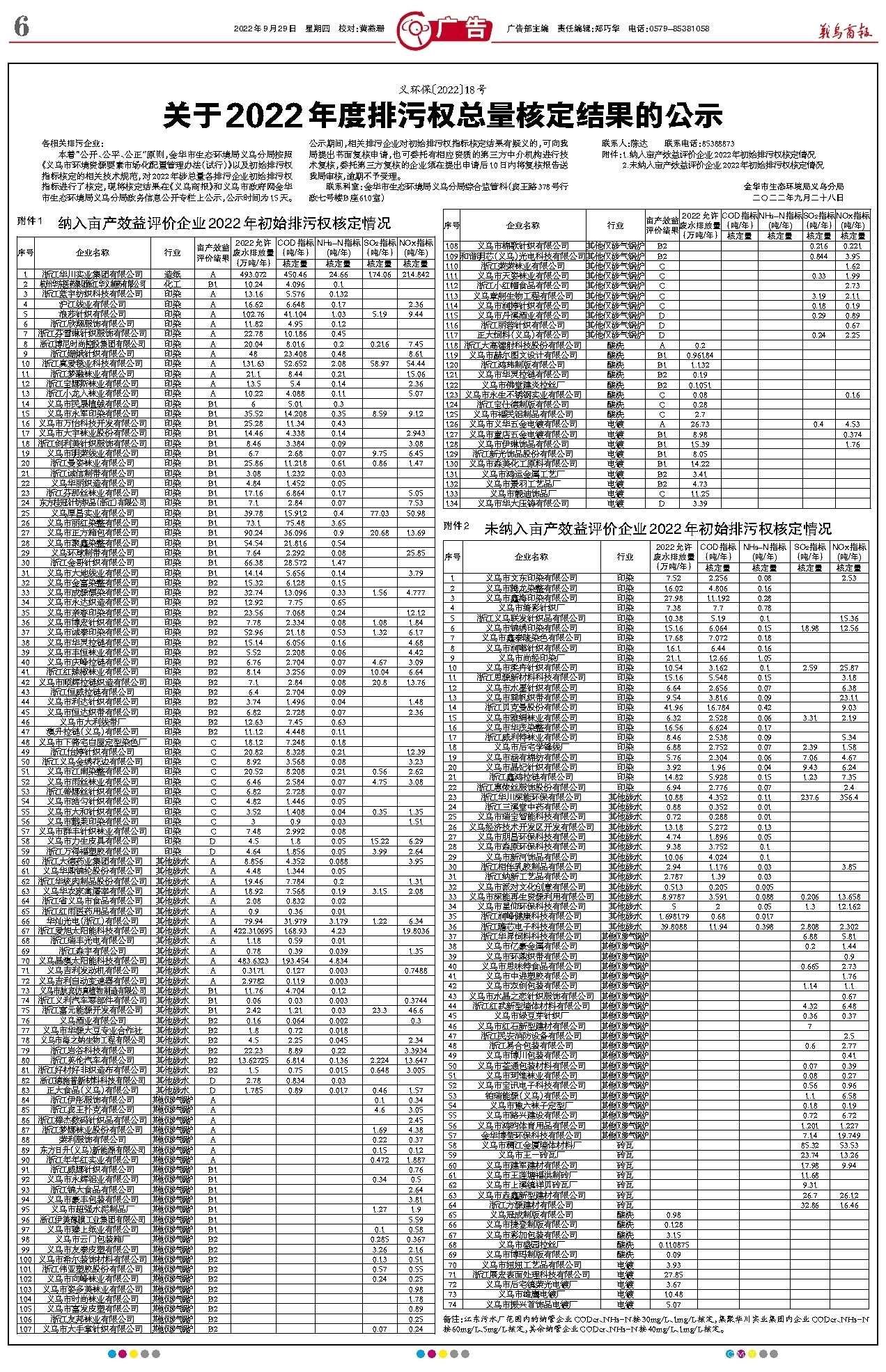 关于2022年度排污权总量核定结果的公示